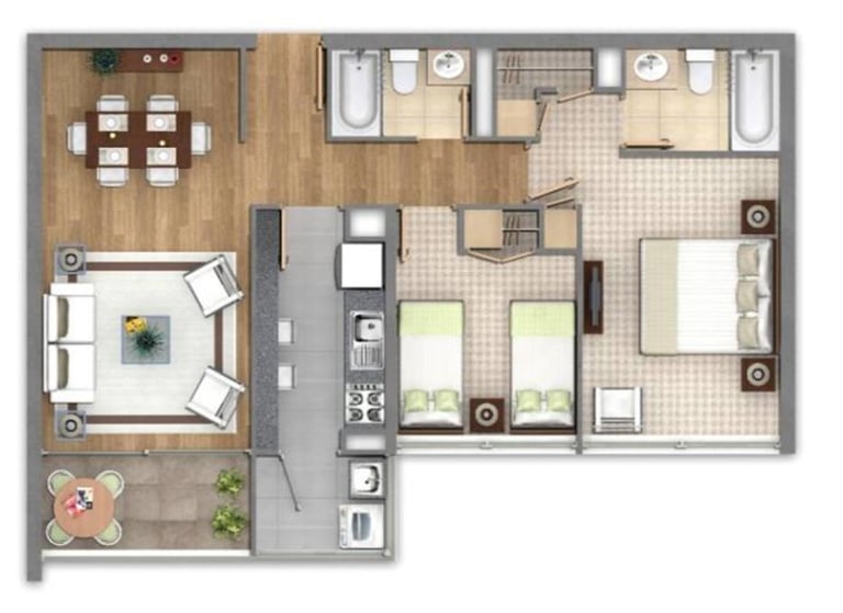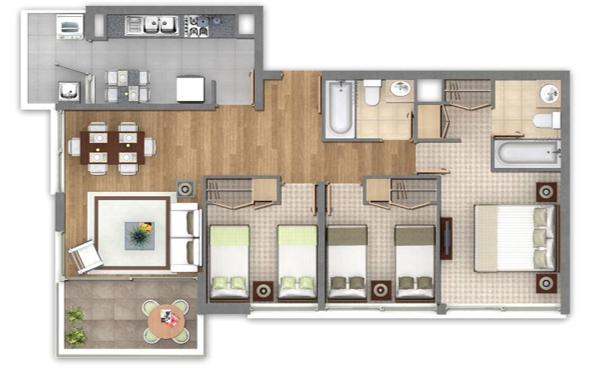 Desde UF 2.900 1, 2 y 3 Dormitorios